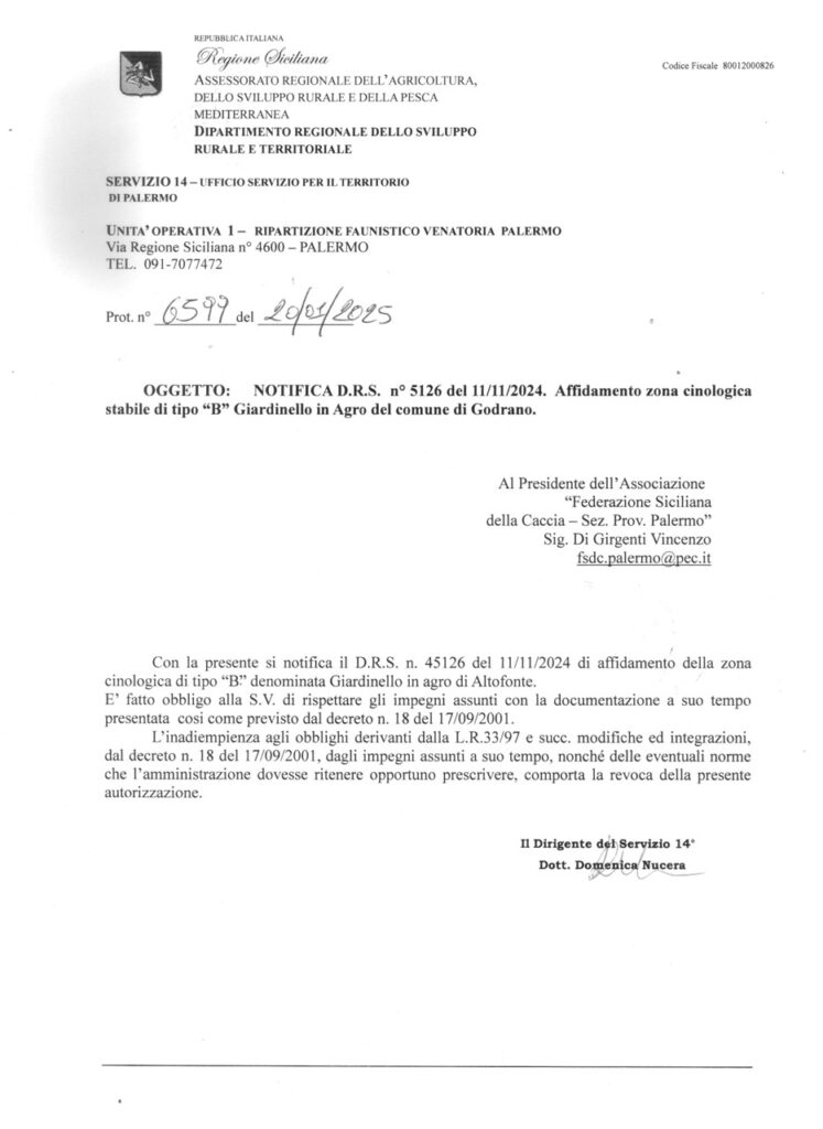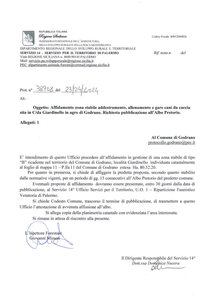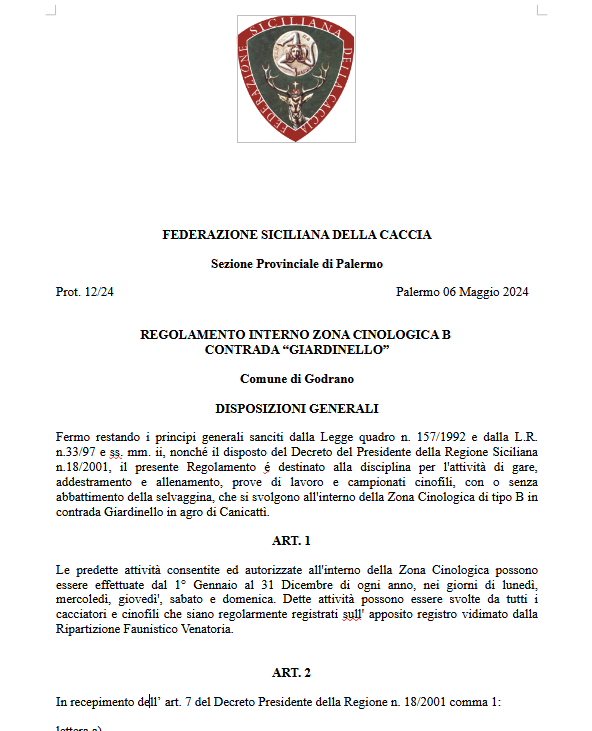 Affidamento zona cinologica stabile di tipo “B” Giardinello in Agro del comune di Godrano.