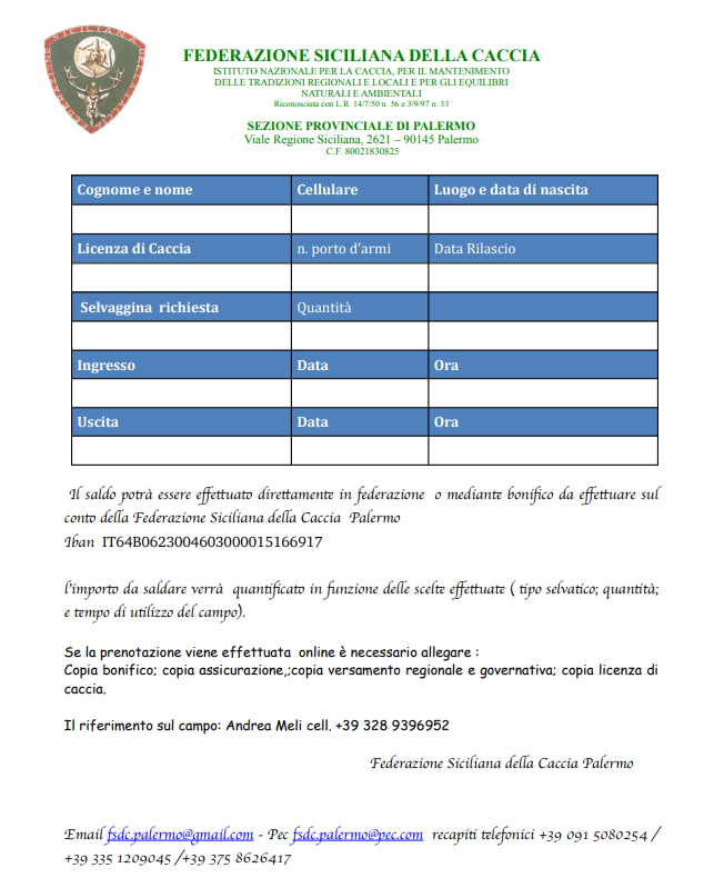 Si invitato gli utenti interessati alla prenotazione in modalità cartacea della zona cinologia a stampare e compilare l'apposito documento sottostante secondo le indicazioni presenti sullo stesso ai fini dell'autorizzazione.